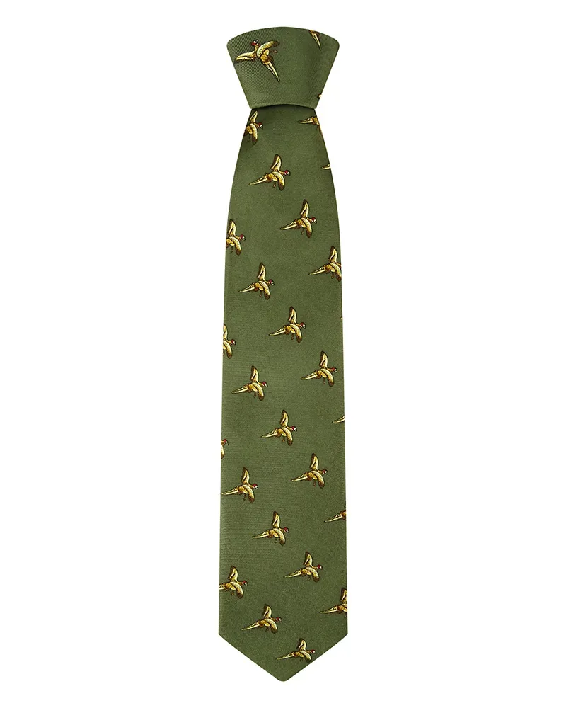 Hoggs of Fife Flying Pheasant Silk Country Tie in Green