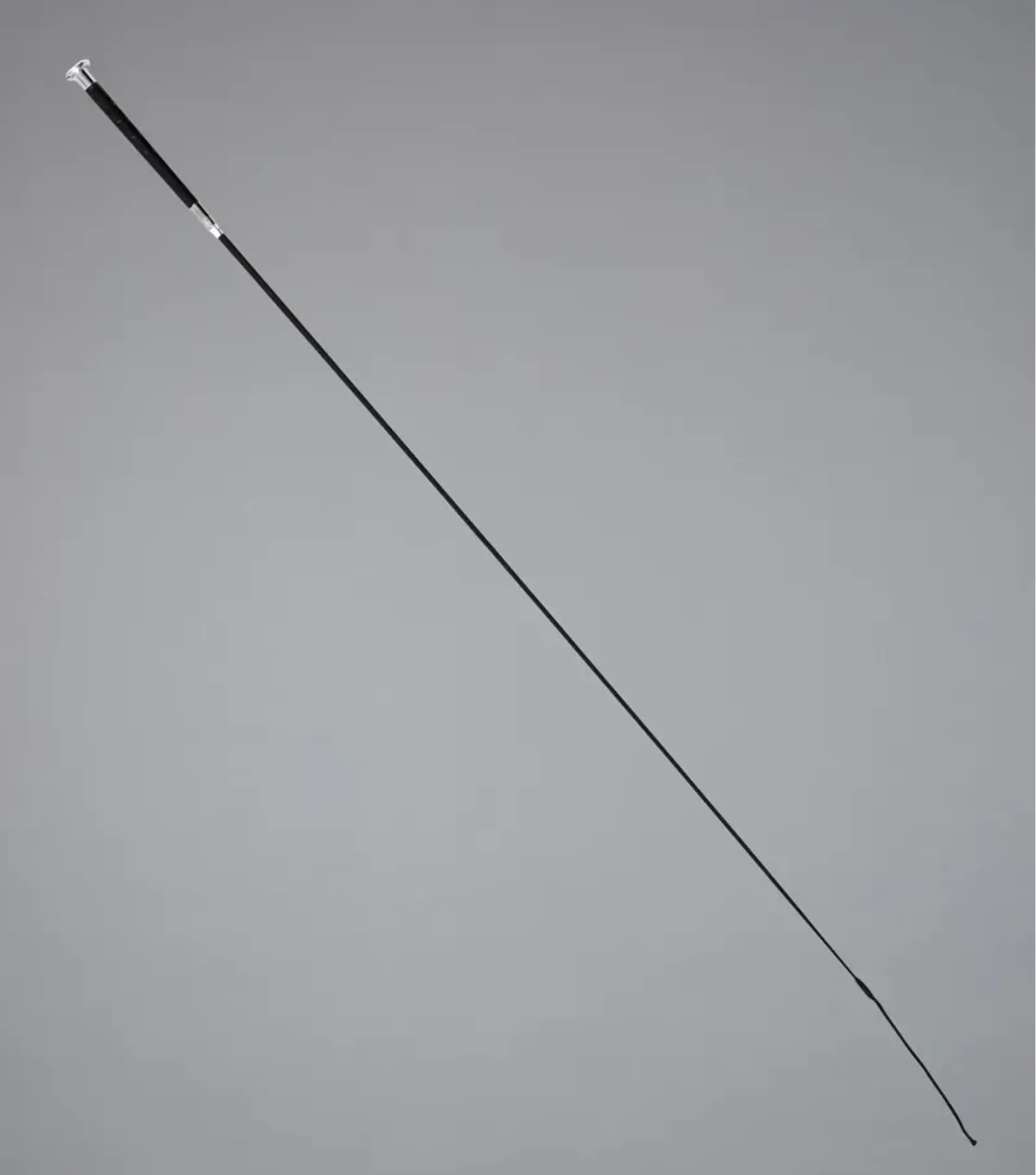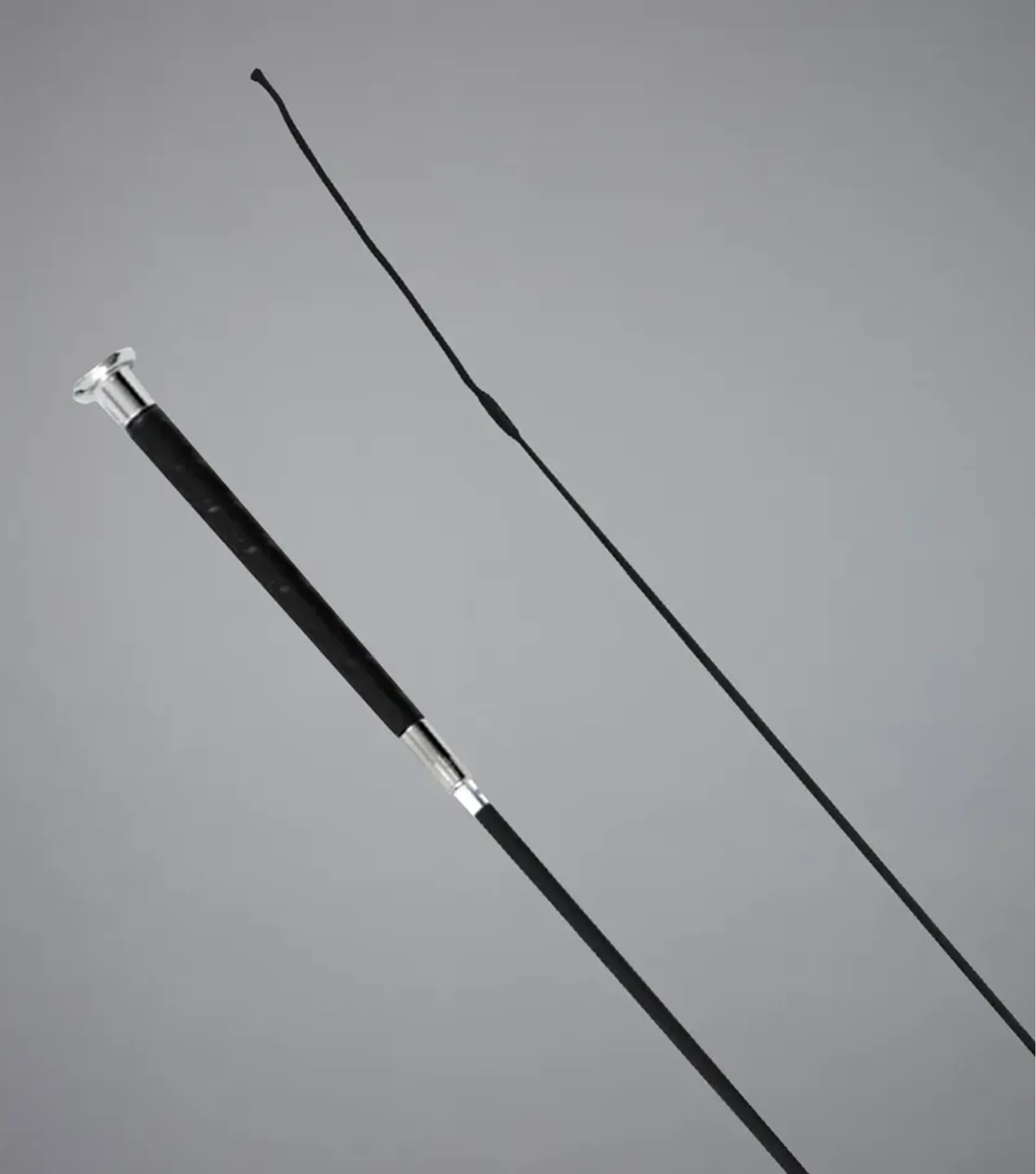 The handle has a smooth, synthetic leather wrap around which helps maintain grip and the top cap helps prevent it from sliding through the riders hand.
