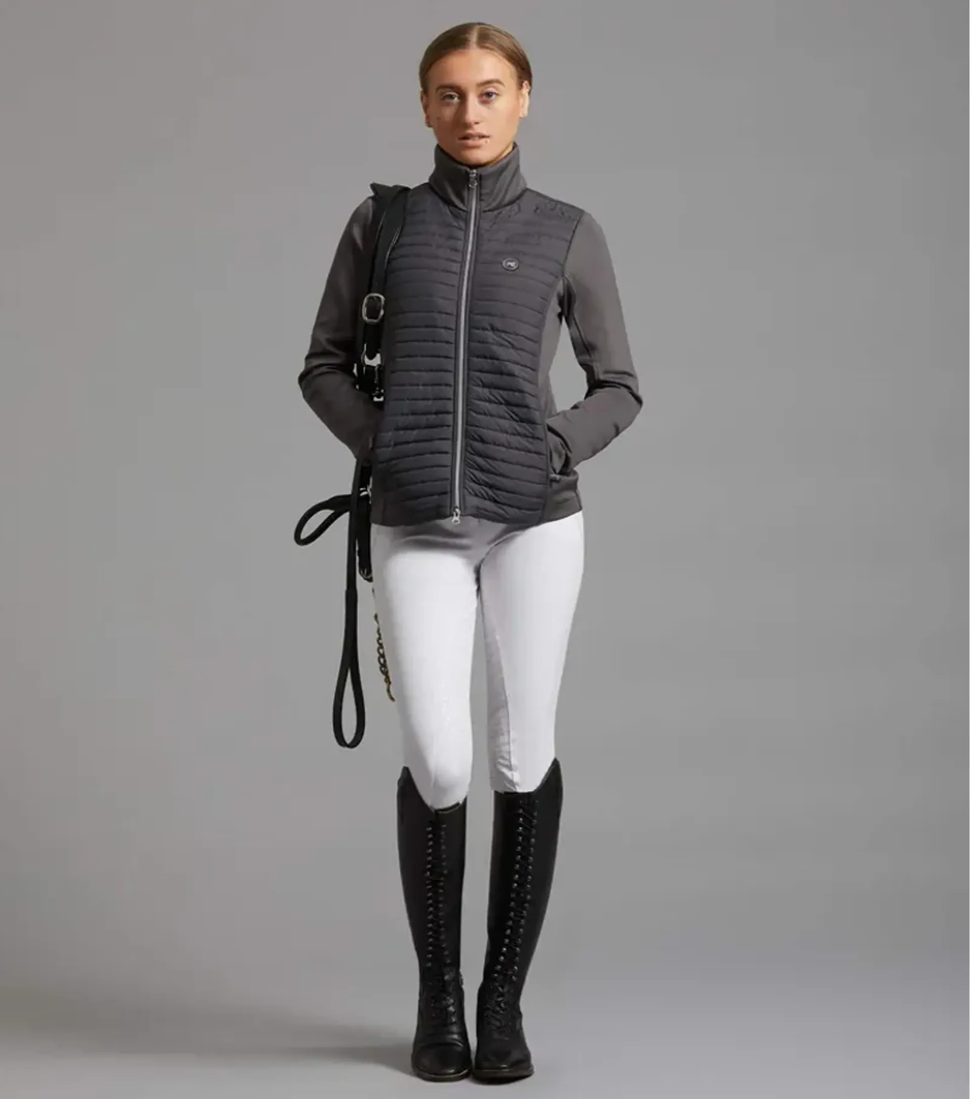 The main body has been engineered with a durable yet lightweight quilted material that forms an innovative built-in riding gilet over the front, back and shoulder of this hybrid jacket.