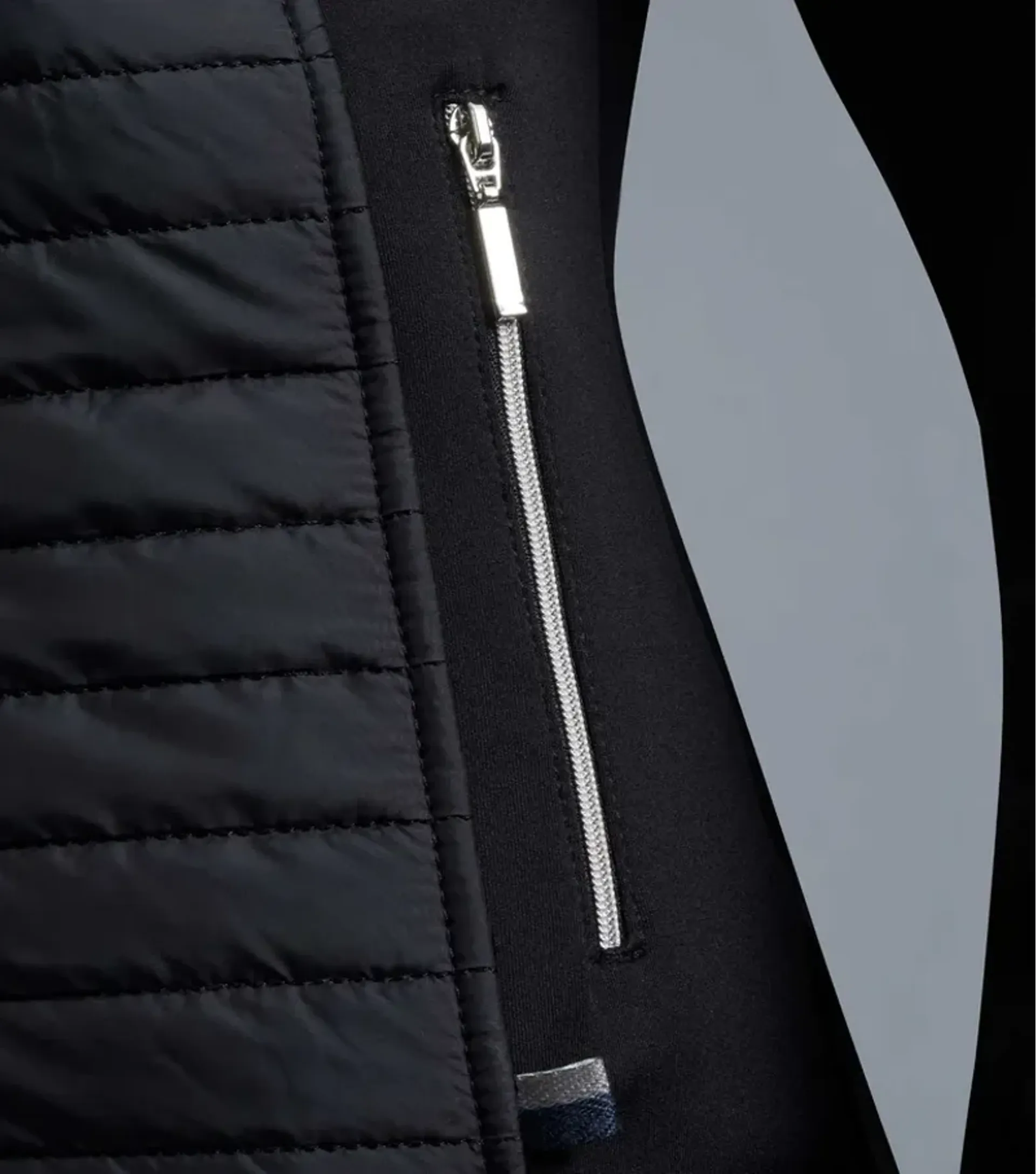 The main body has been engineered with a durable yet lightweight quilted material that forms an innovative built-in riding gilet over the front, back and shoulder of this hybrid jacket.