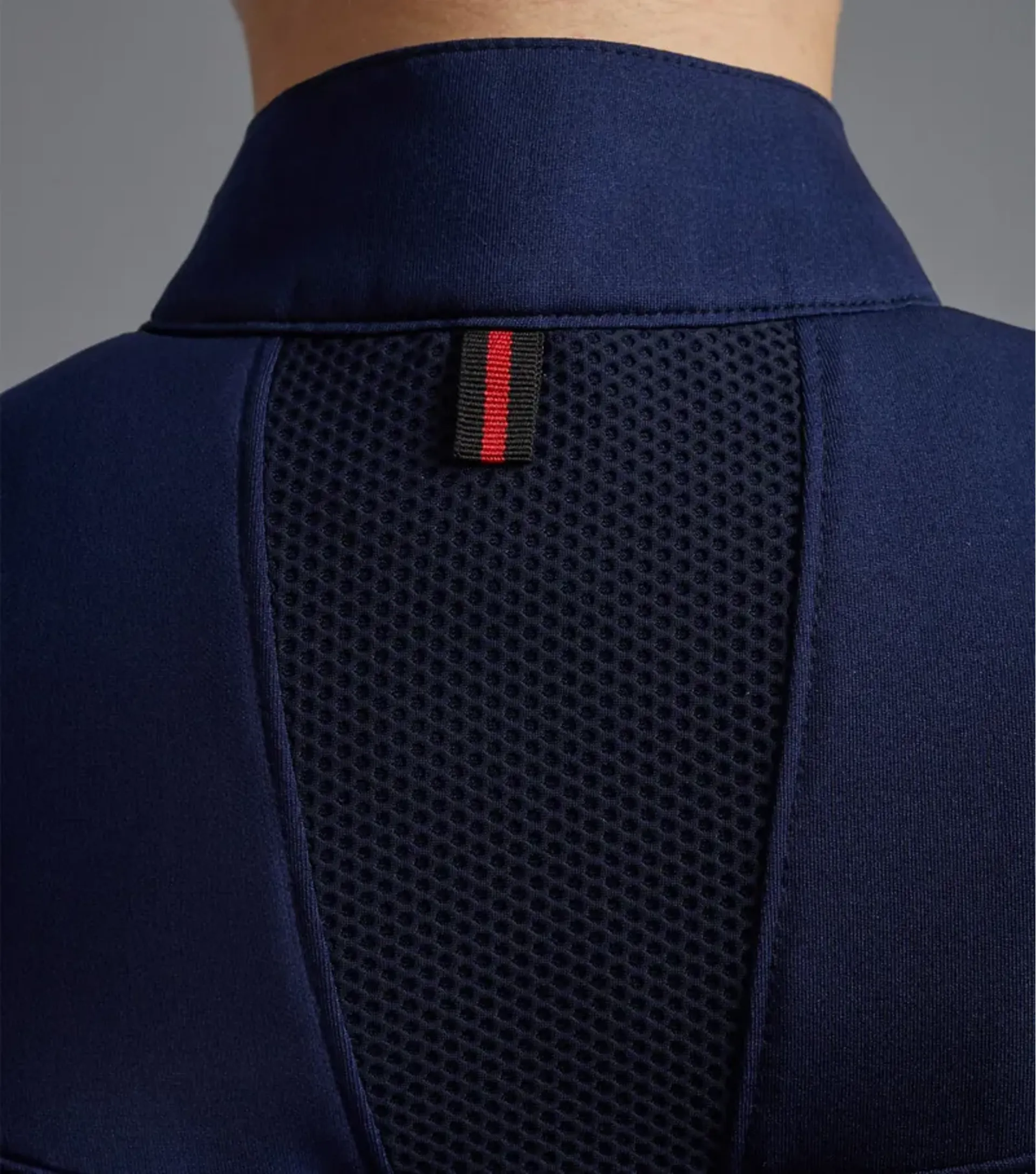 To compliment the mesh sports panels, pleated fabric features over the sleeve edge for a layered dimension. A ¼ YKK zip adorns the standard height collar and flattering seamlines create a panelled look which enhances the silhouette.