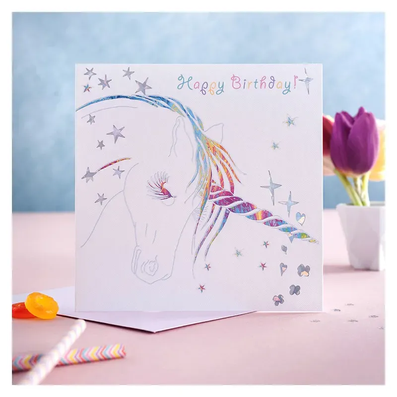 Deckled Edge Prancing Myth Card - Happy Birthday - Unicorn Head