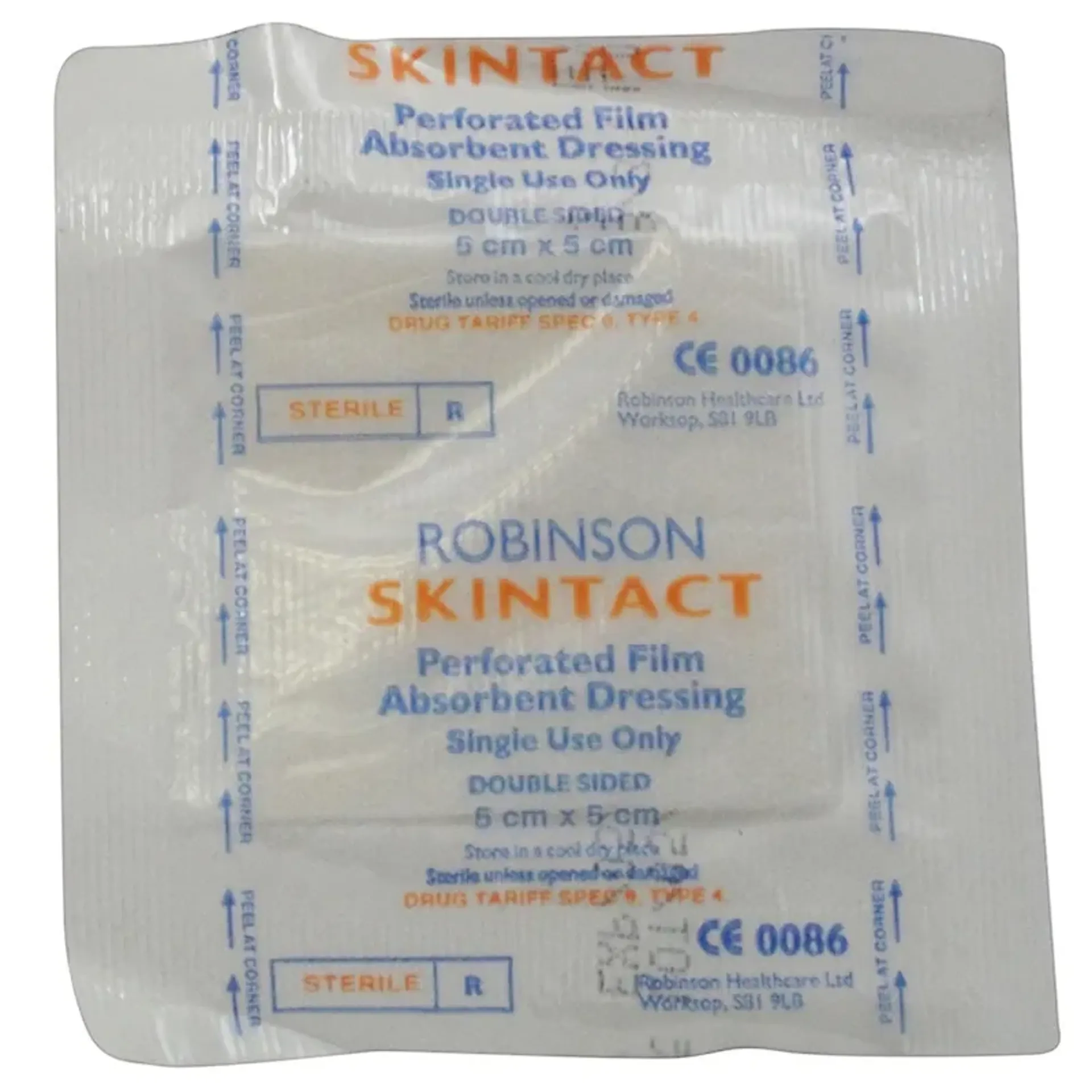 Low adherent, sterile, perforated film, absorbent dressing suitable for the management of minor wounds.