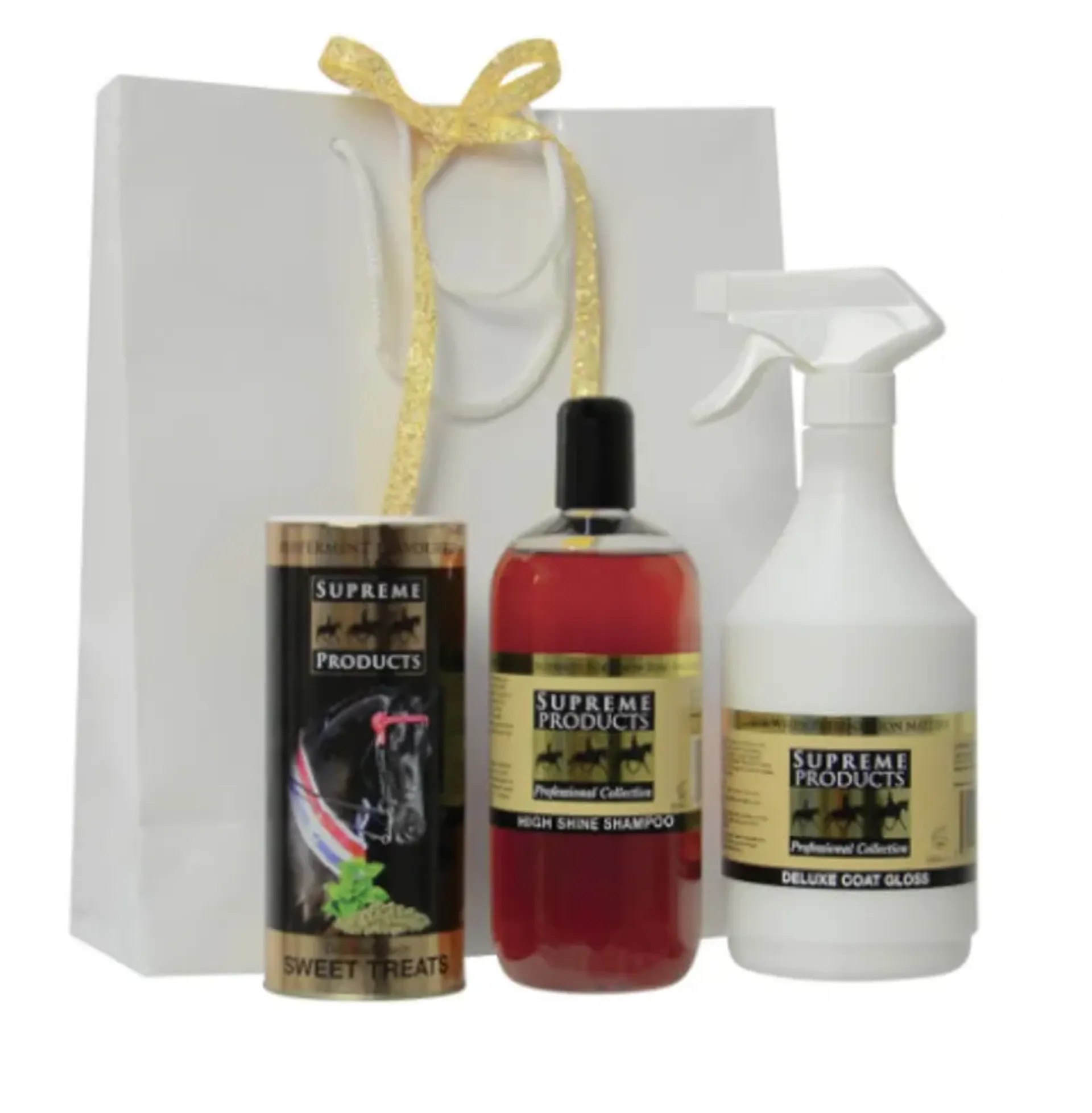 Contains 750ml coat gloss, 500ml shampoo and Supreme Products sweet treats.