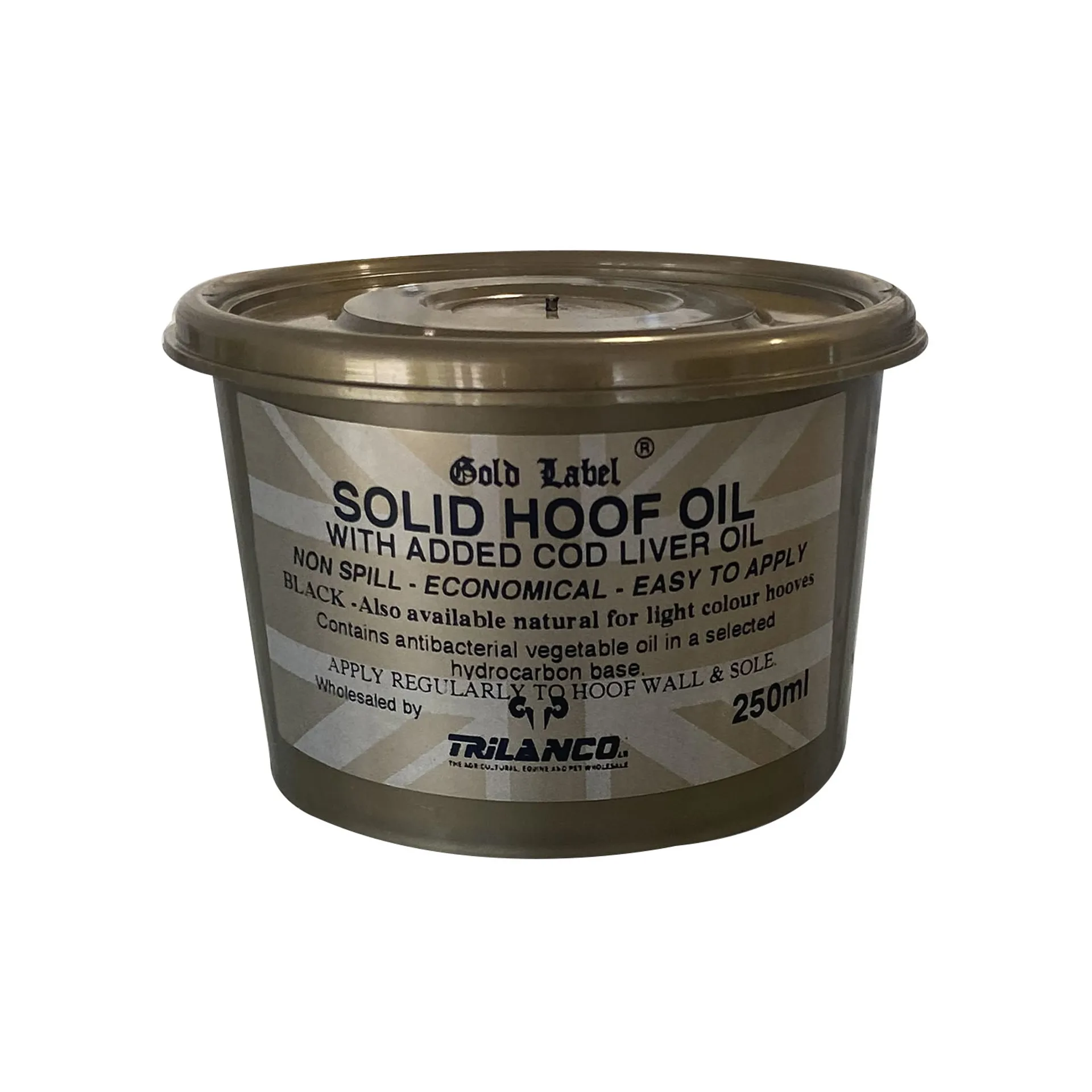 A solidified oil which spreads easy yet remains economical and non-spillable. An antibacterial vegetable oil in a solid base with added cod liver oil.