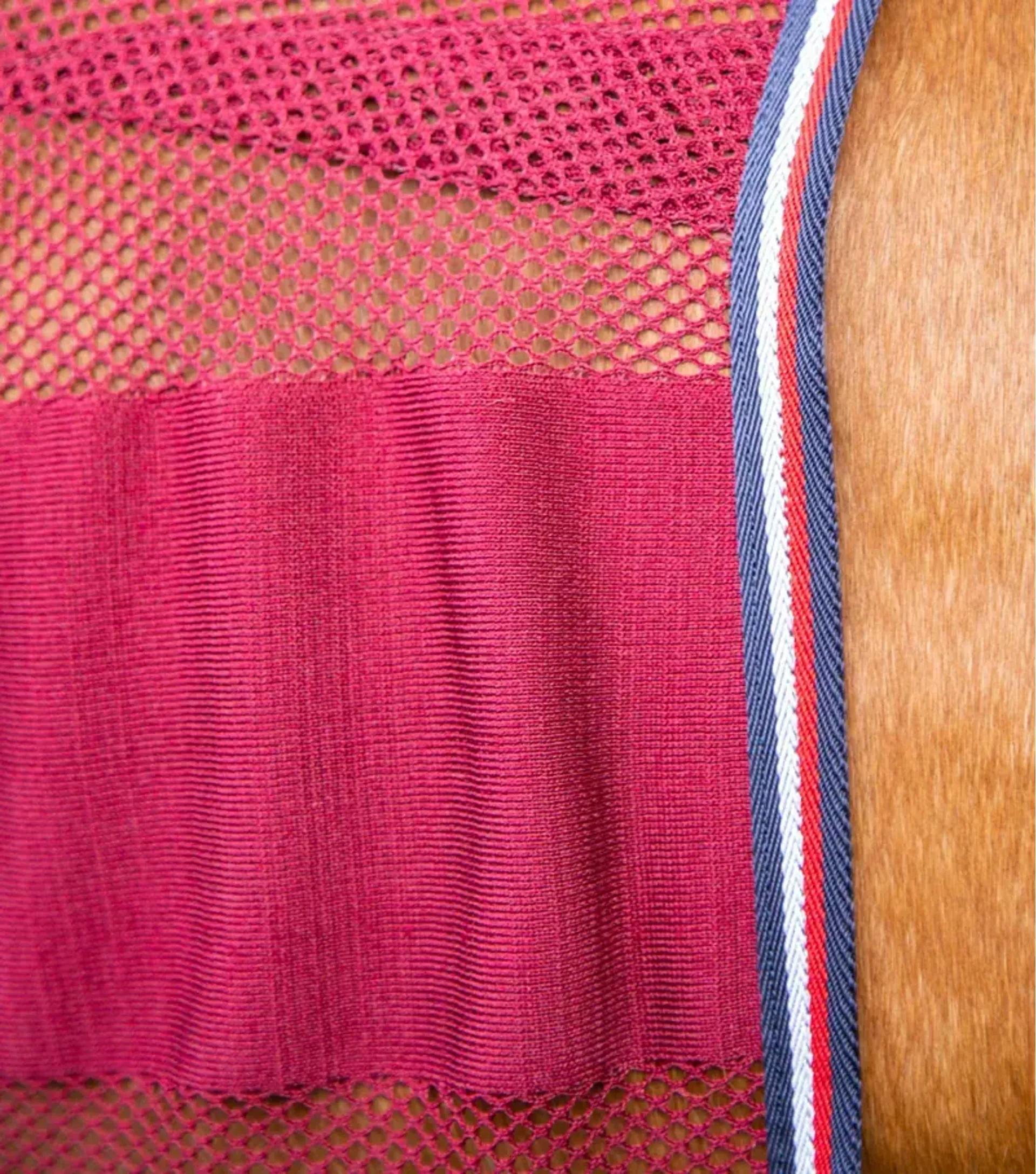 A combination of solid and mesh knit formation, this technically advanced cooler provides partial coverage of the horses coat which aids in the absorption and dispersion of moisture while allowing the exit of warm heat energy given off by the horse.