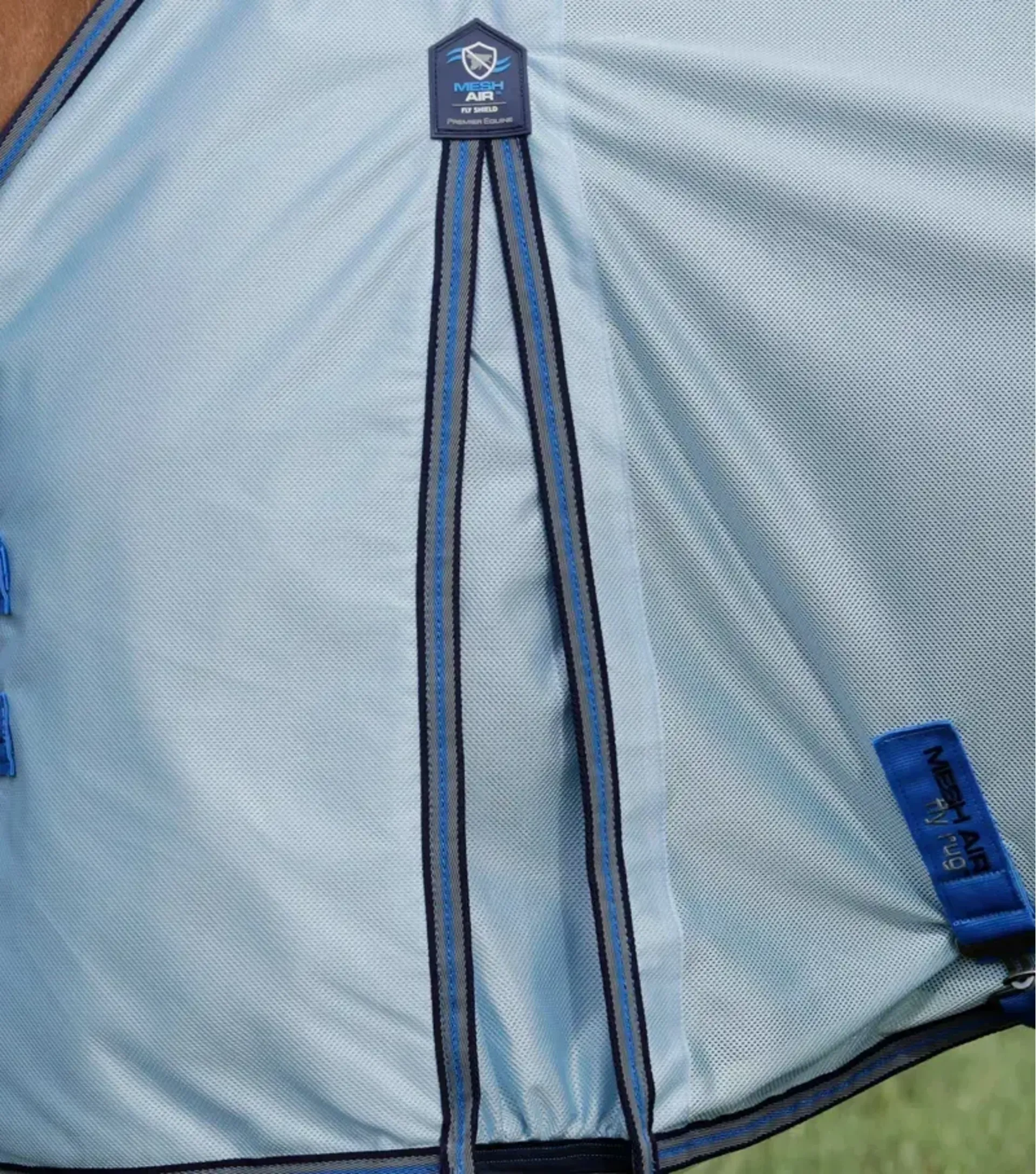 The mesh air fly rug is crafted from durable and lightweight sports mesh fabric. The airy construction features small holes to allow for adequate airflow and high breathability whilst preventing the access of biting insects such as flies, horseflies, and mosquitoes.