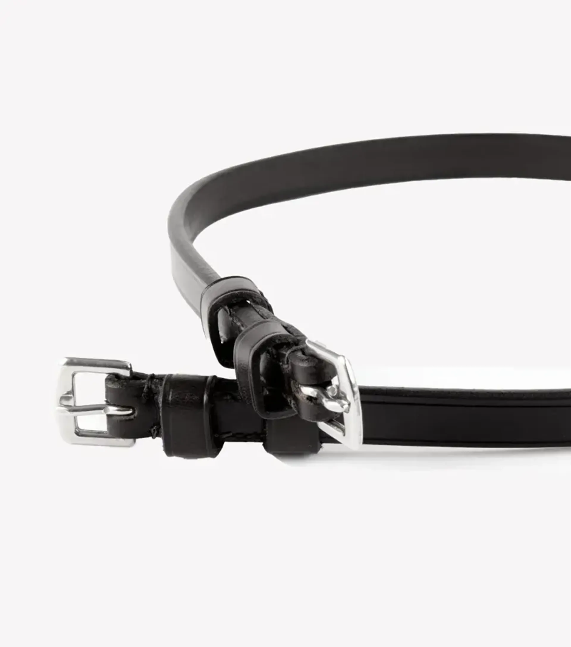 Finished with two stainless steel buckets for dual attachment, this throatlash allows for adjustment on either side.