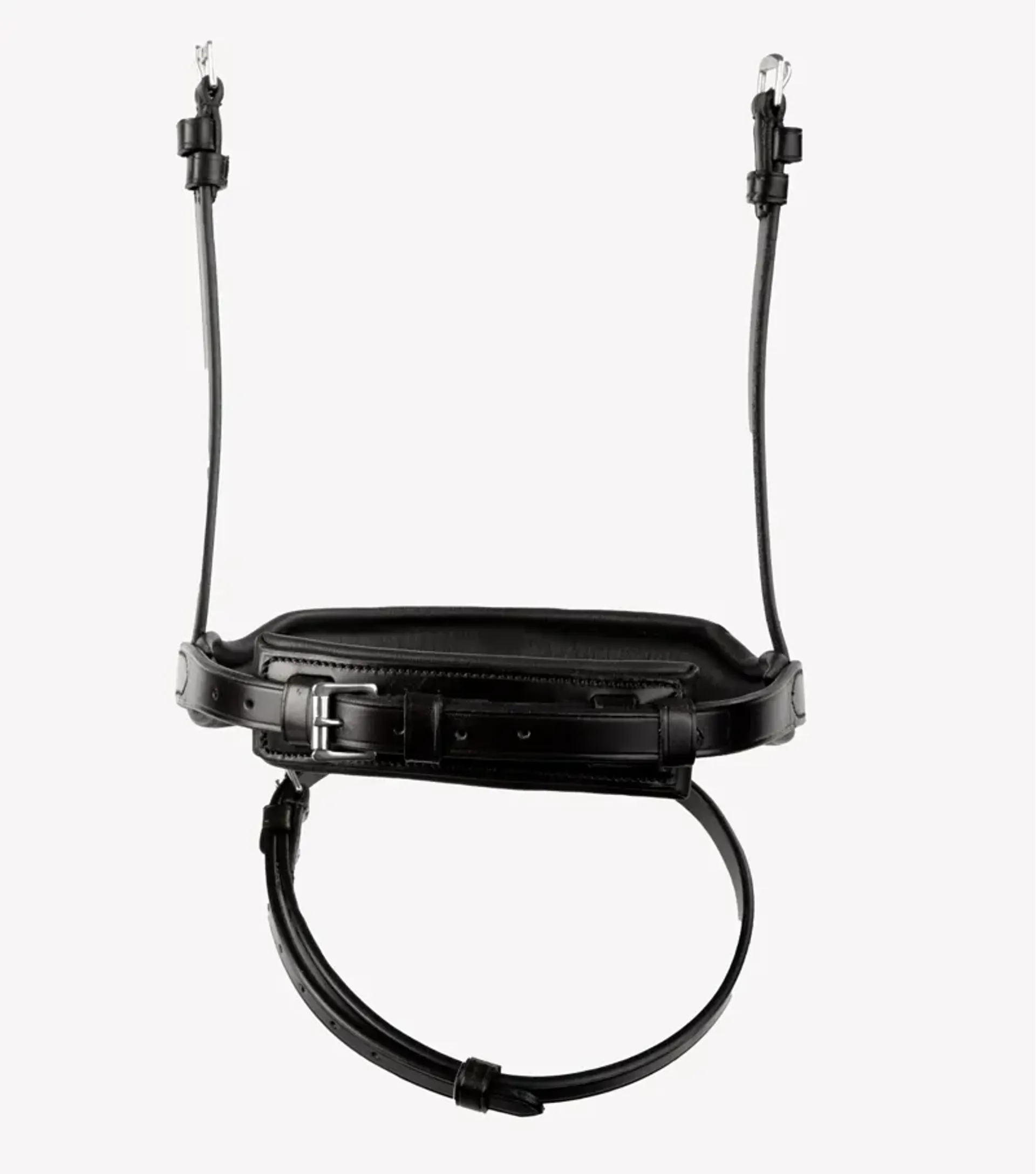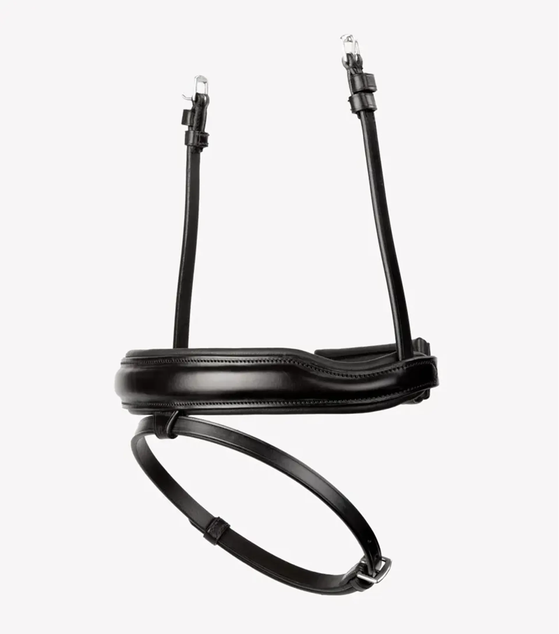 Premier Equine's unique anatomically shaped snaffle noseband dips down at the sides to avoid contact with the horse's cheekbones, alleviating pressure and potentially tightening performance. Premium quality stainless steel fastenings and elegant stitching completed an overall stunning look.