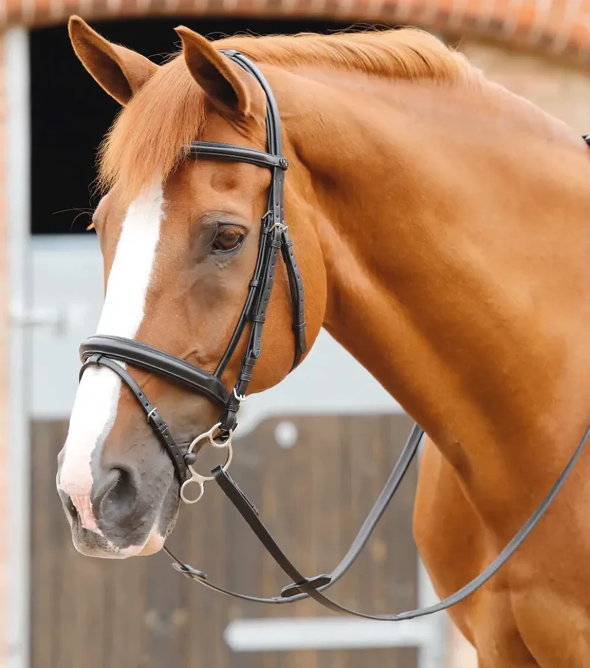The thick, well-padded cavesson noseband provides a comfortable surface against the horses skin and features a professional round raised design. It also has a flash attachment so that the flash strap can be used if needed.