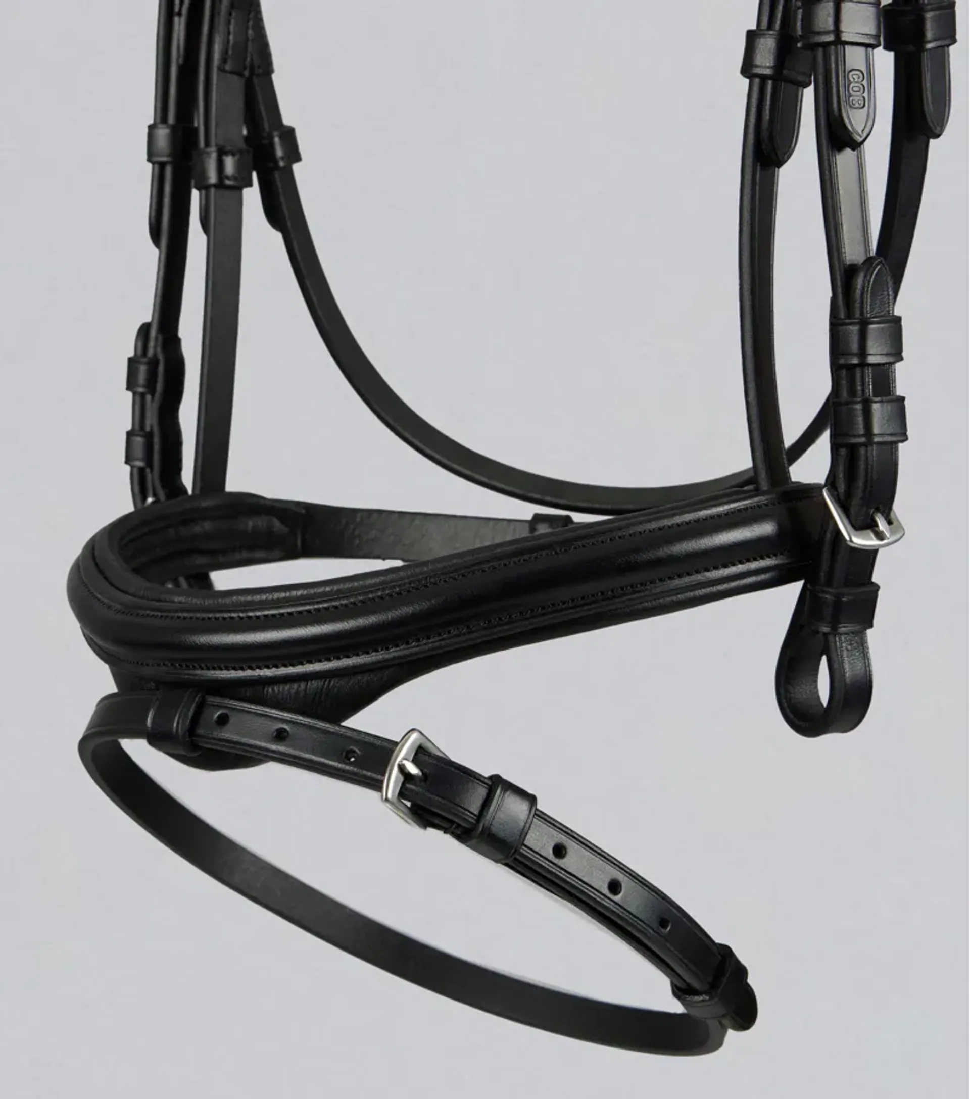 It is made from top-grade Italian leather and features an anatomically shaped headpiece and noseband to ensure even pressure distribution and minimise pressure points. The padded crown and browband offer extra comfort for the horse, while the elegant yet functional design makes it suitable for both training and competition.