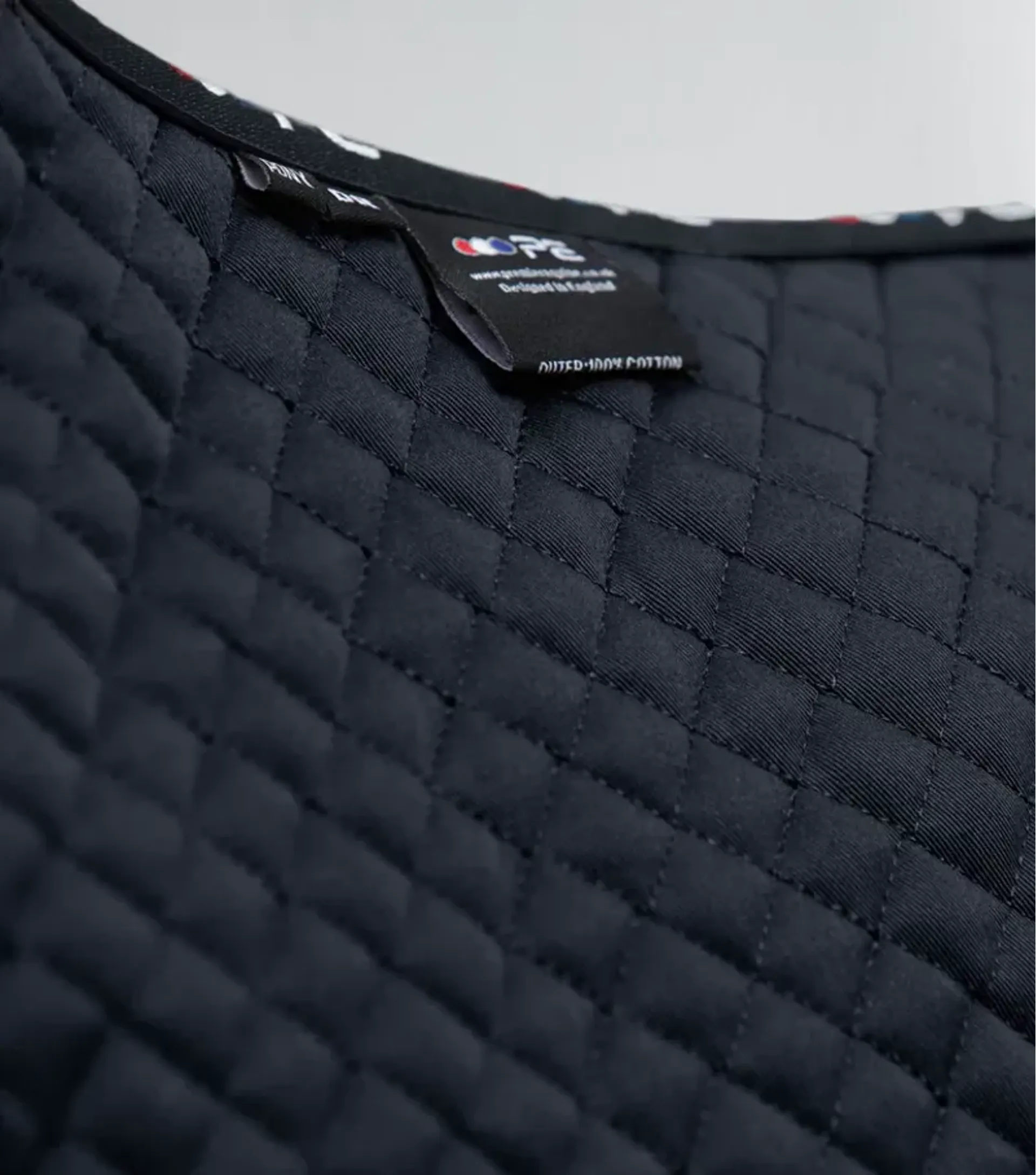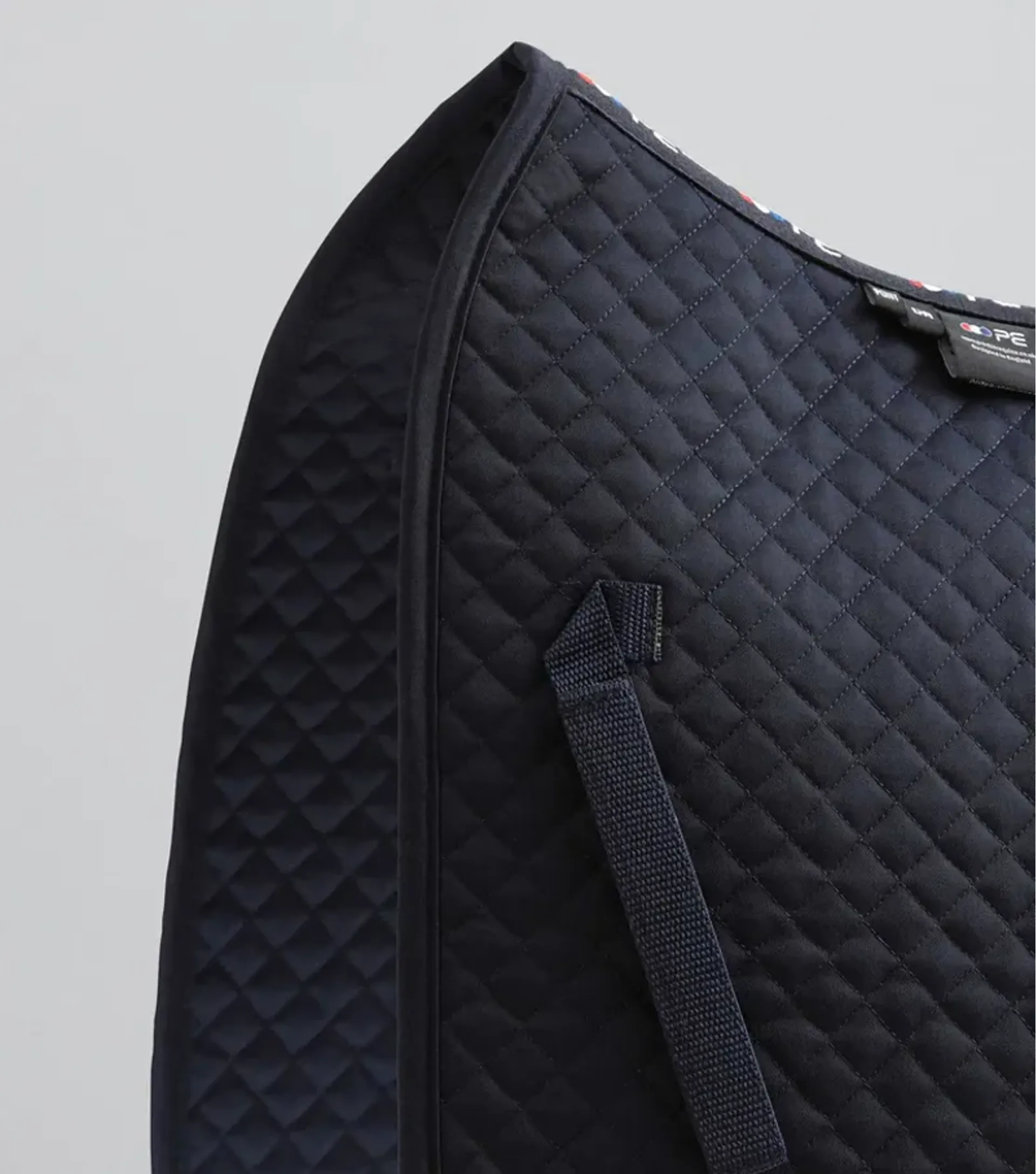 Made entirely from a high quality cotton and featuring a 600-denier polyester anti-rub girth panel, this is the ideal every day or competition dressage saddle pad for ponies.