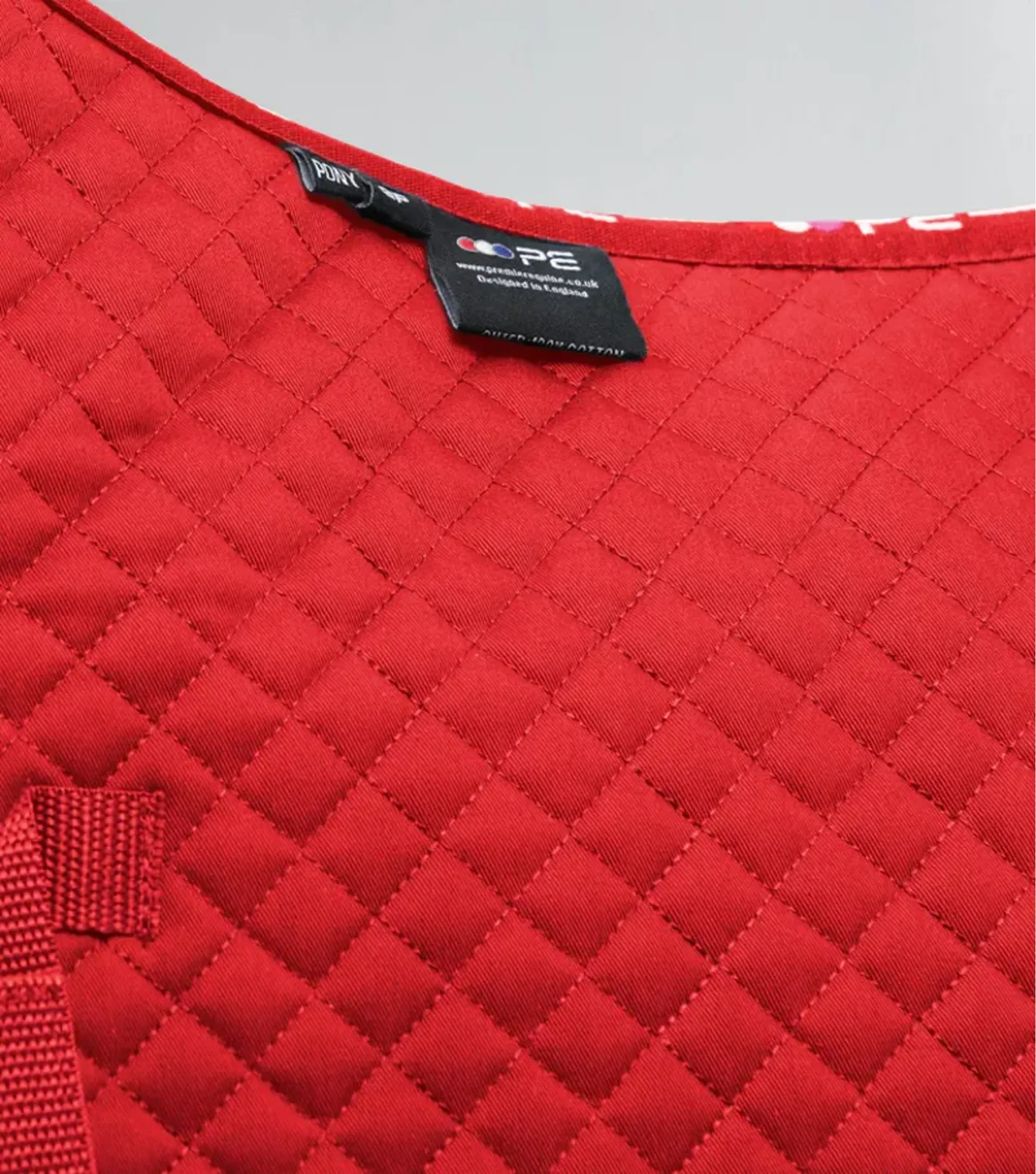Made entirely from high quality cotton and featuring a 600-denier polyester anti-rub girth panel, this is the ideal every day or competition saddle pad for ponies.