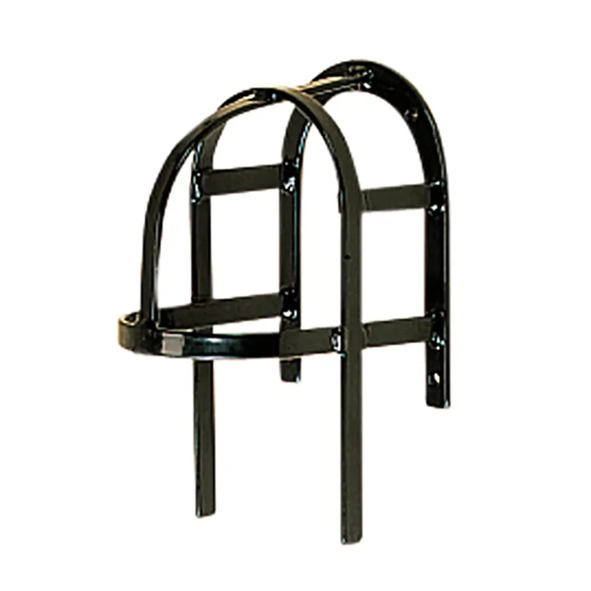This rack is very robust and made from black stubbyfine coated steel. Height 22cm, width 13cm and projection 14cm.