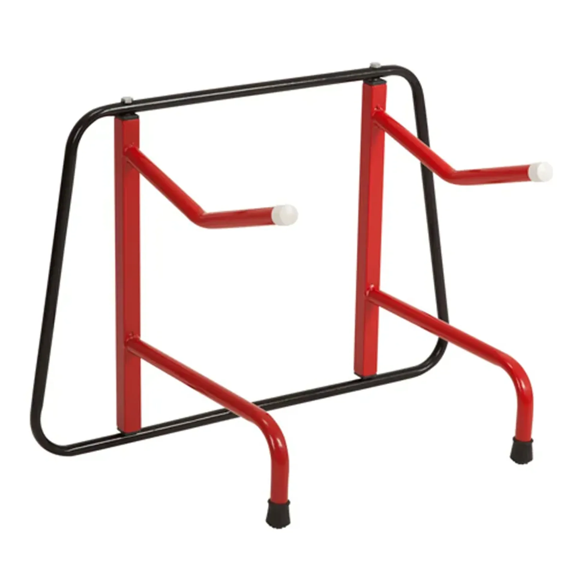 Flat storage to use in just two seconds, simply swing out arms for instant use. Suits most estate cars, 4 x 4s, trailers and lorries and at home when wall fixings are undesirable. Lightweight and easily carried this is a boon for travelling. Rubber feet on legs and caps on arms finish this great product. Friction fittings are adjustable by spanner (not supplied) to control ease of swing. Stubbyfine coated arms and black frame. Height 58cm, width 83cm and depth 46cm (7cm when flat).