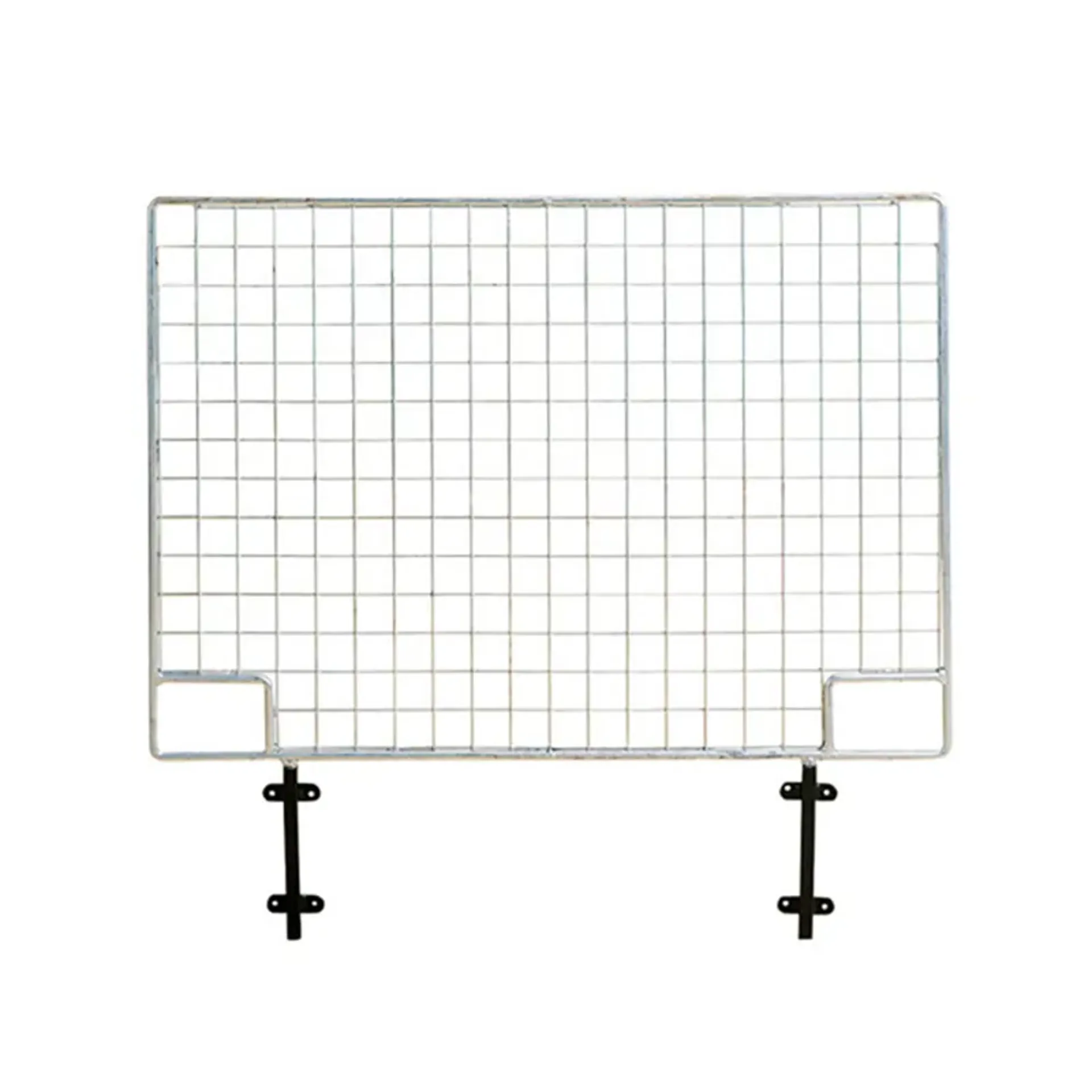 12mm rod frame with 50mm square mesh. Instantly removable from the stubbyfine coated sockets, they can also be interchanged with anti-weaver and top door grilles. Hot dip galvanised.