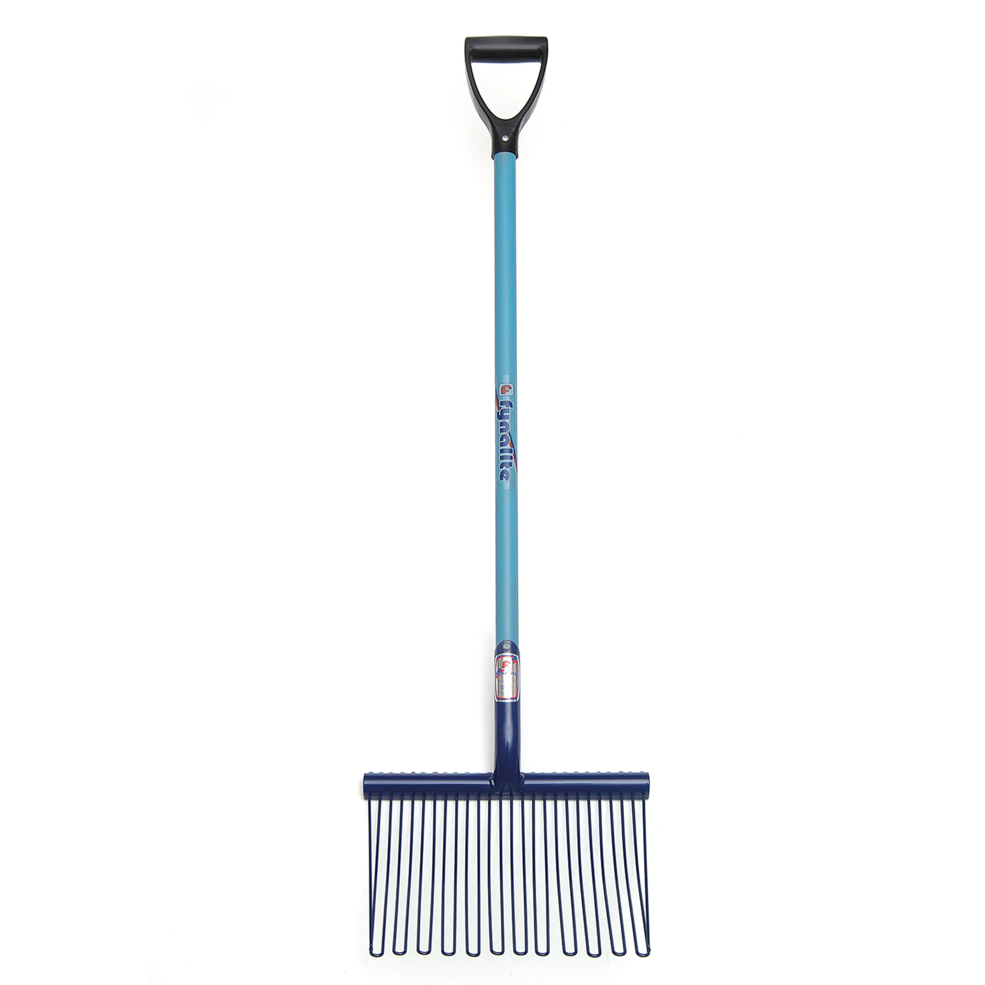 This ingenious design traps debris but allows bedding to fall between rounded tines that will not damage rubber matting.Strong, light and easy to use, with a 100cm hardwood handle with plastic d-grip.